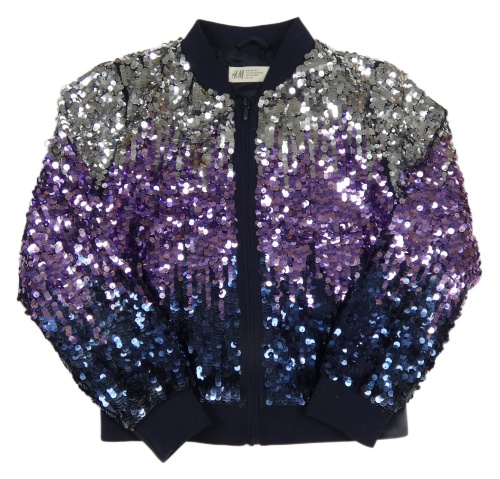 Stříbrno-fialovo-tmavomodrá flitrová bunda H&M