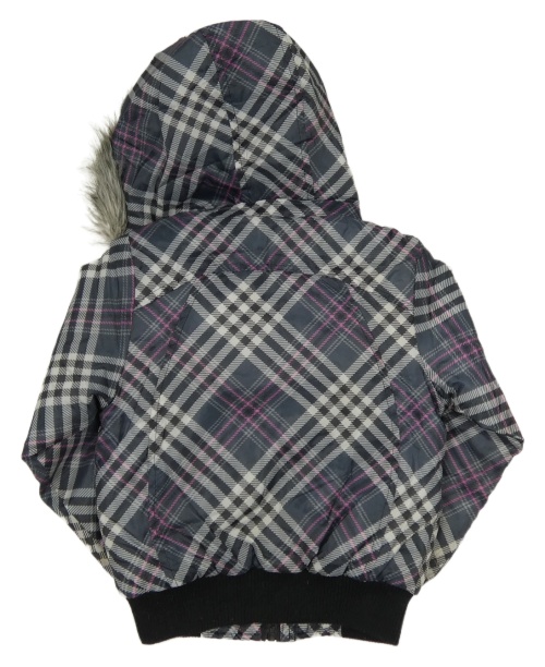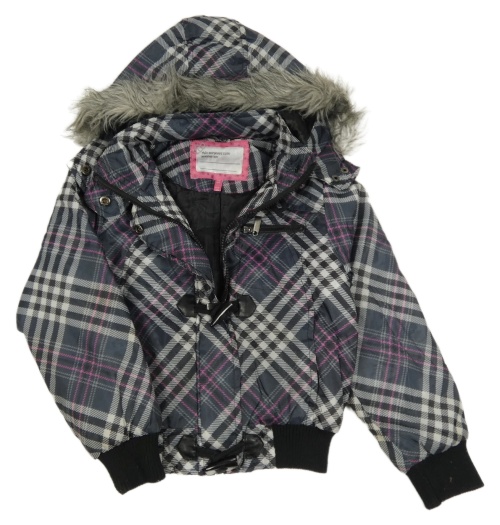 Antracitovo-bílo-růžová kostkovaná šusťáková zimní bunda s kapucí Matalan