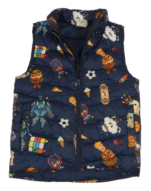 Tmavomodrá šusťáková prošívaná zateplená vesta s obrázky H&M