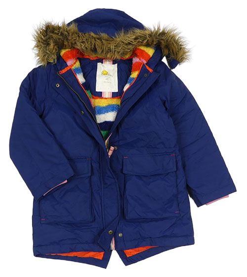 Tmavomodrá šusťáková zimní bunda s kapucí s kožešinou Mini Boden