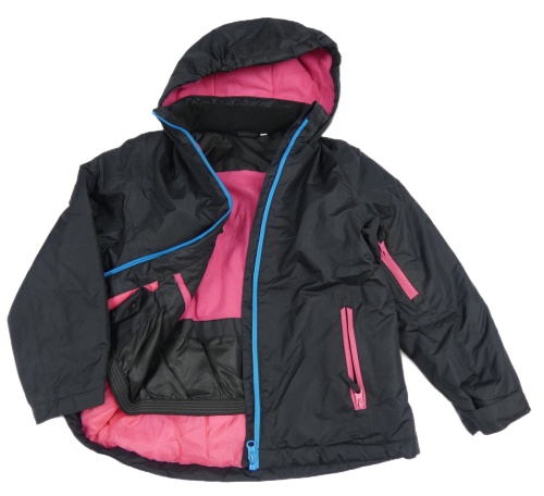 Černá šusťáková zimní bunda s proužky a kapucí Pocopiano