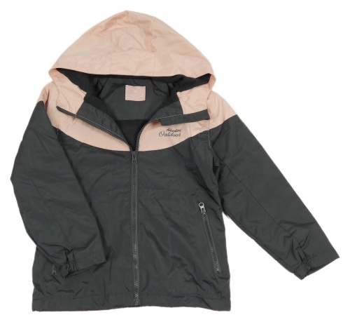 Světlerůžovo-tmavošedá šusťáková podzimní funkční bunda s kapucí