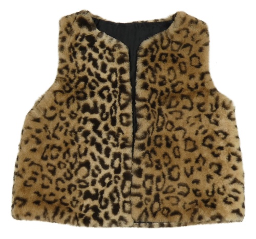 Hnědá kožešinová podšitá vesta s leopardím vzorem