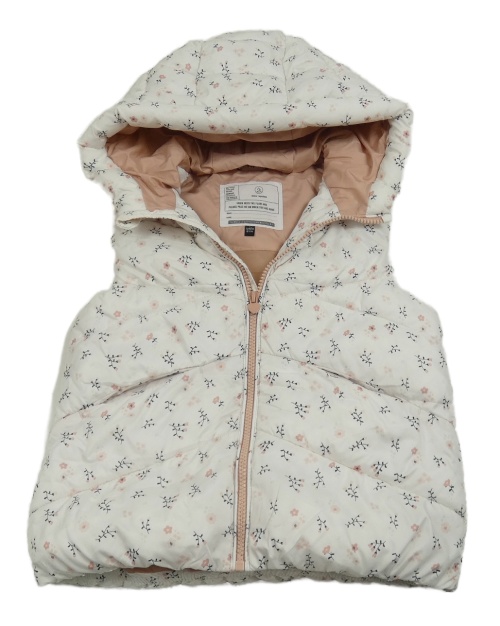 Bílá květovaná šusťáková zateplená vesta s kapucí C&A