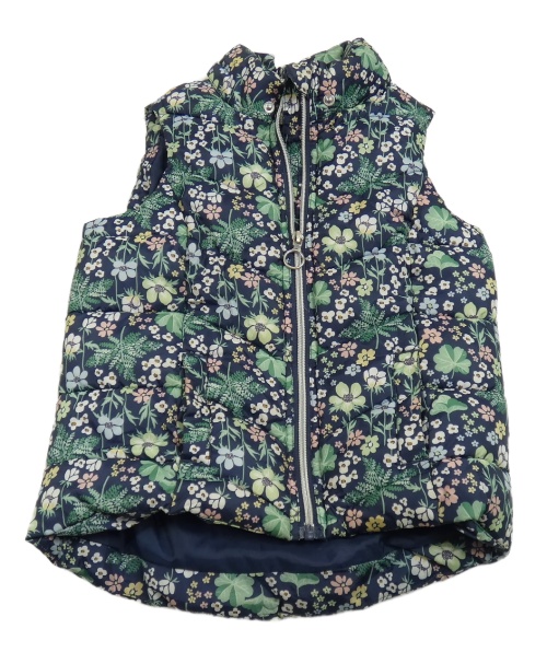 Tmavomodrá květovaná šusťáková zateplená vesta H&M