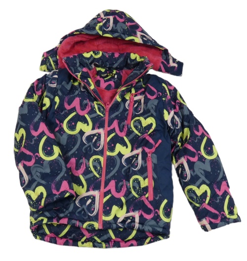 Tmavomodrá šusťáková zimní bunda se srdíčky a kapucí