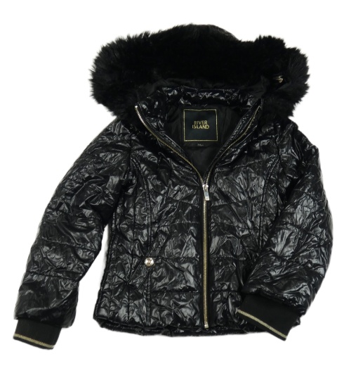 Černá koženková zimní bunda s kapucí River Island