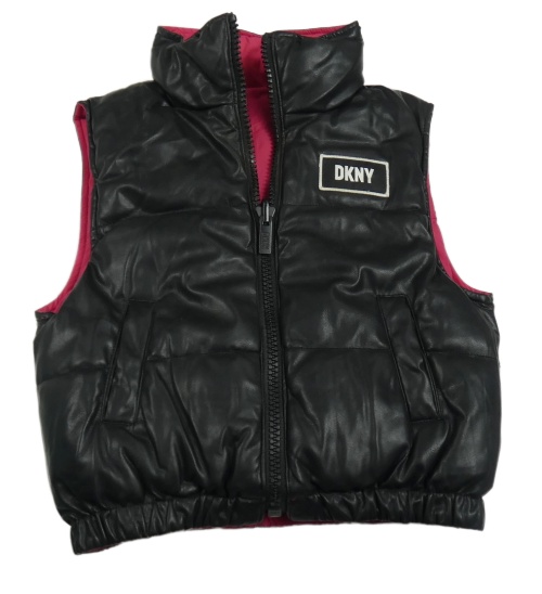 Malinová šusťáková zateplená oboustranná crop vesta s logem DKNY
