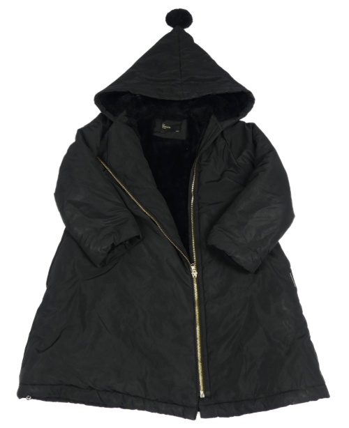 Černý šusťákový zimní kabát se zlatým zipem a kapucí