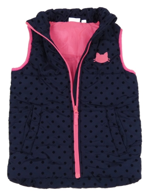 Tmavomodrá puntíkatá šusťáková zateplená vesta s kočkou