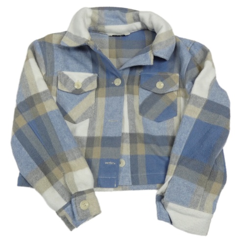 Modro-bílá kostkovaná vlněná crop košilová bunda shein