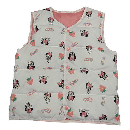 Bílá šusťáková zateplená vesta s Minnie a jahodami Disney