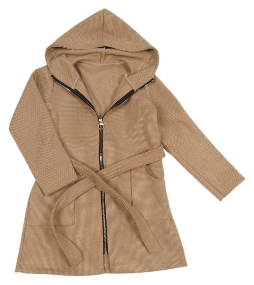 Světlehnědo-smetanový vzorovaný kabát s kapucí