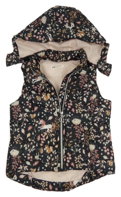 Černá šusťáková zateplená vesta se zvířátky a odepínací kapucí H&M