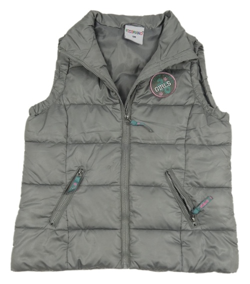 Šedá šusťáková zateplená vesta s nášivkou Pocopiano