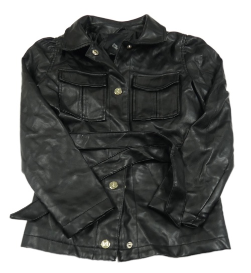 Černá koženková podšitá košilová bunda s páskem RIVER ISLAND