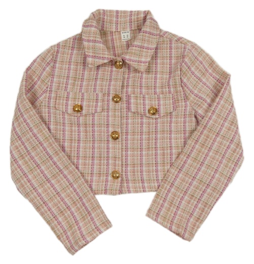 Růžovo-béžová vzorovaná úpletová crop bunda s gombíky shein
