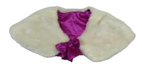 Světlebéžová kožešinová podšitá pelerína s mašlí