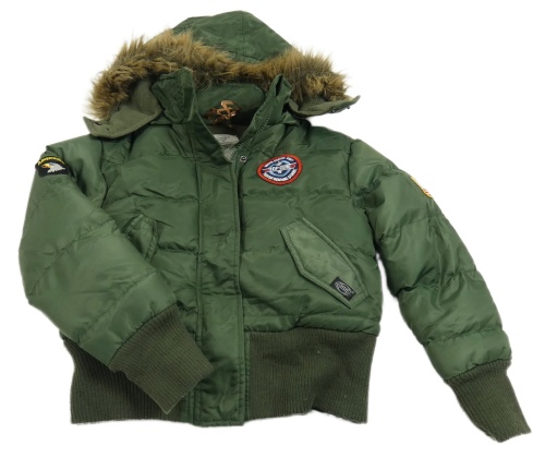 Zelený šusťákový zimní bomber s kapucí - Top Gun