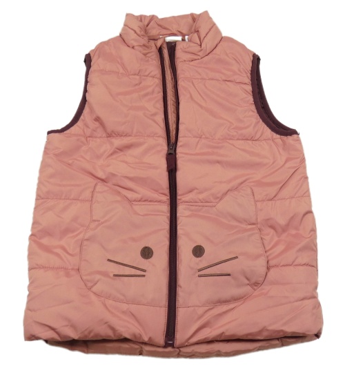 Růžová šusťáková zateplená vesta s kočkou kids