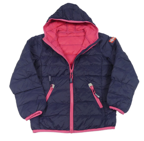 Tmavomodrá prošívaná šusťáková funkční zateplená bunda s kapucí TROLLKIDS