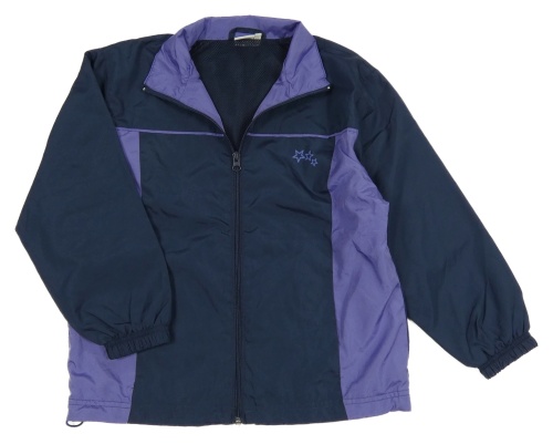 Tmavomodro-fialová šusťáková jarní bunda s hvězdami