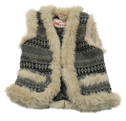 Černo-šedá vzorovaná vlněná podšitá vesta s kožešinou VINGINO