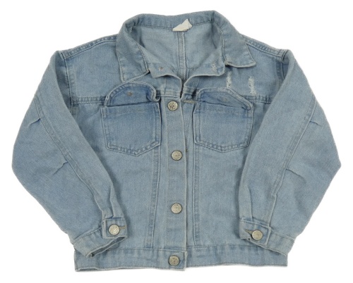 Světlemodrá riflová crop bunda s prošoupáním a kyticí a límečkem