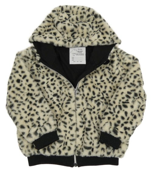 Béžovo-černá kožešinová leopardí zateplená bunda s kapucí Nutmeg