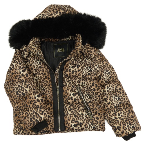 Hnědo-černá vzorovaná šusťáková zimní bunda s kapucí River Island