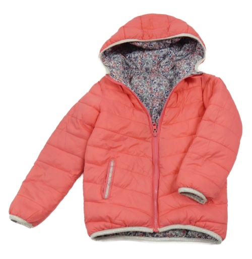 Růžová šusťáková prošívaná oboustranná zimní bunda s kapucí