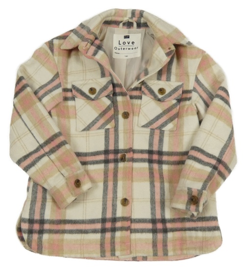 Krémovo-růžovo-šedá kostkovaná vlněná podšitá košilová bunda F&F