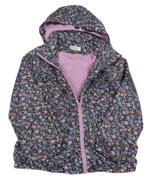 Černo-fialová květovaná šusťáková jarní bunda s kapucí H&M