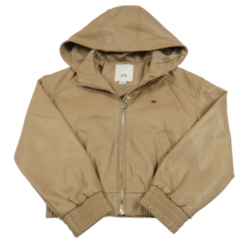 Hnědá crop koženková bunda s kapucí River Island