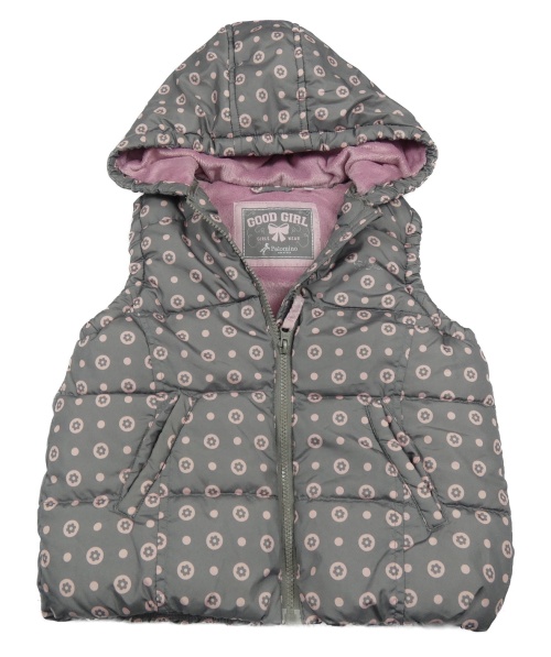 Šedá květinová šusťáková zateplená vesta s kapucí C&A
