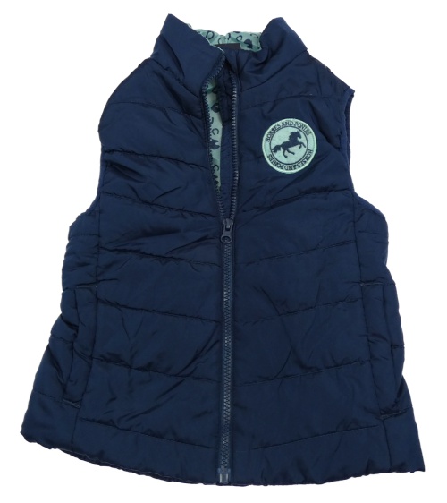 Tmavomodrá prošívaná šusťáková funkční jezdecká zateplená vesta s nášivkou s koníkem crane