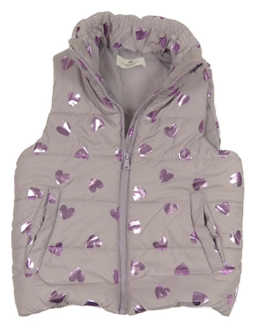 Lila šusťáková zateplená vesta se srdíčky H&M