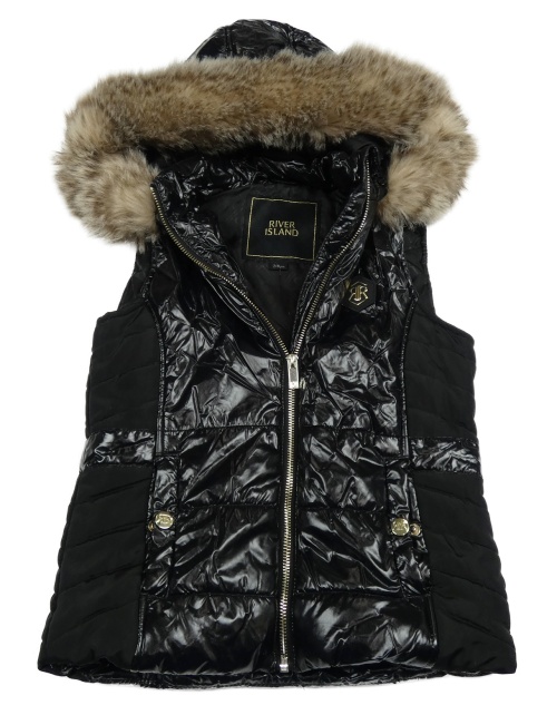 Černá šusťáková lesklá zateplená vesta s kapucí River Island