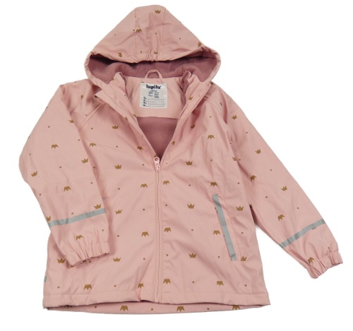 Světlerůžová nepromokavá jarní bunda s korunkami a kapucí Lupilu