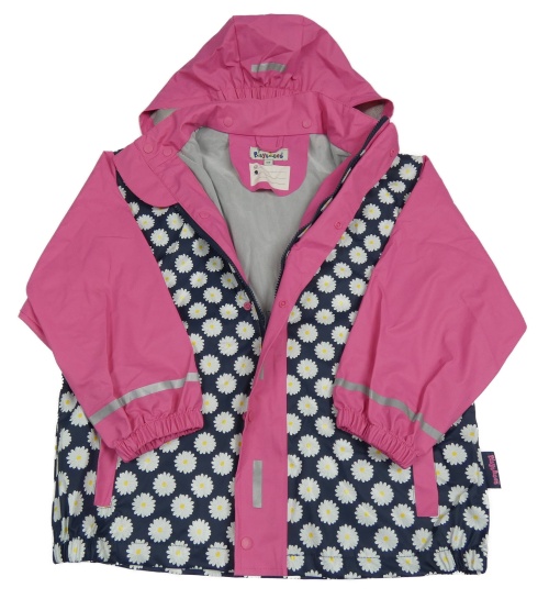 Tmavomdoro-růžová květovaná voděodolná jarní bunda s kapucí