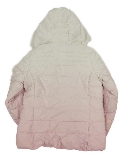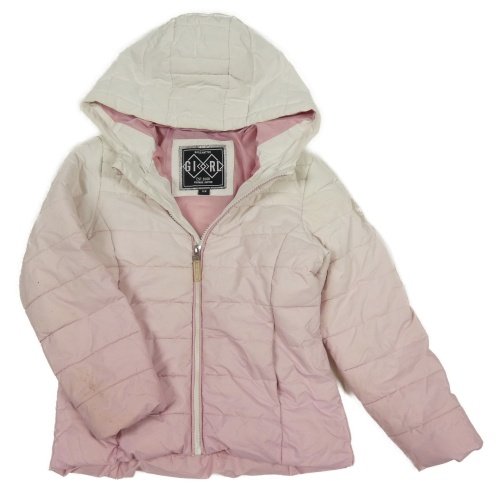 Bílo-světlerůžová žebrovaná šusťáková přechodová bunda s nášivkou a kapucí C&A