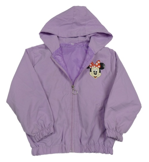 Levandulová šusťáková jarní bunda s Minnií a kapucí