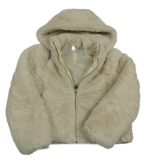 Béžová kožešinová zateplená crop bunda s kapucí Primark