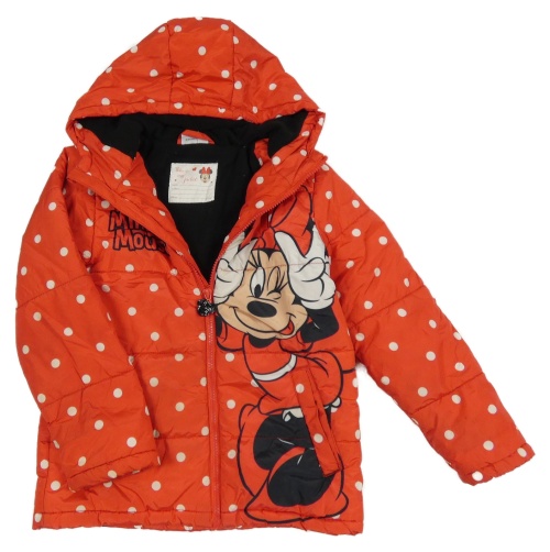 Červená šusťáková prošívaná zimní bunda s Minnií a kapucí Disney