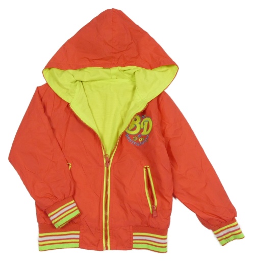Korálová šusťáková oboustranná bunda s nápisem a kapucí
