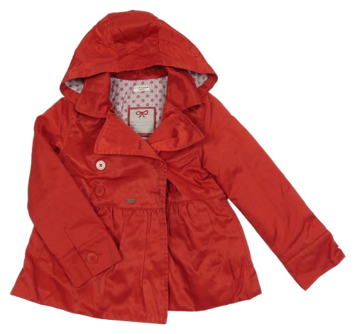 Červený šusťákový jarní kabát s kapucí