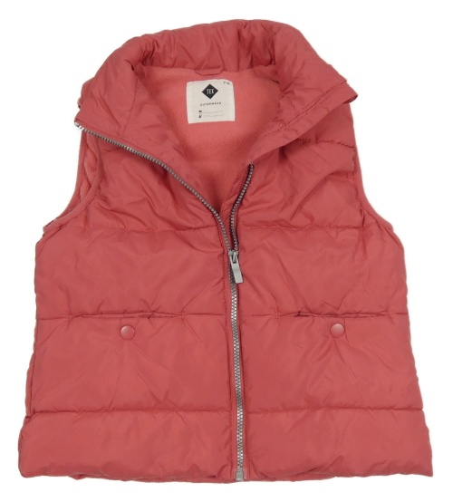 Jahodová prošívaná šusťáková zateplená vesta s ukrývací kapucí TEX