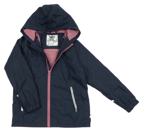 Tmavomodrá nepromokavá jarní bunda se srdíčky a kapucí lupilu