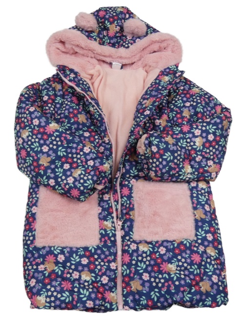 Tmavomodro-růžová květovaná šusťáková přechodová bunda se zvířátky a kapucí Little kids
