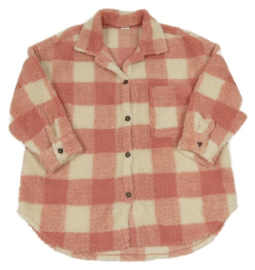 Růžovo-smetanová kostkovaná huňatá košilová bunda Next